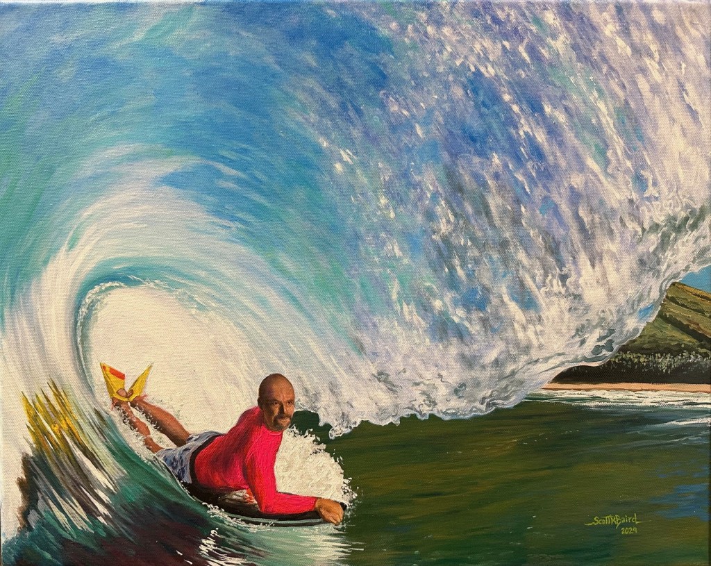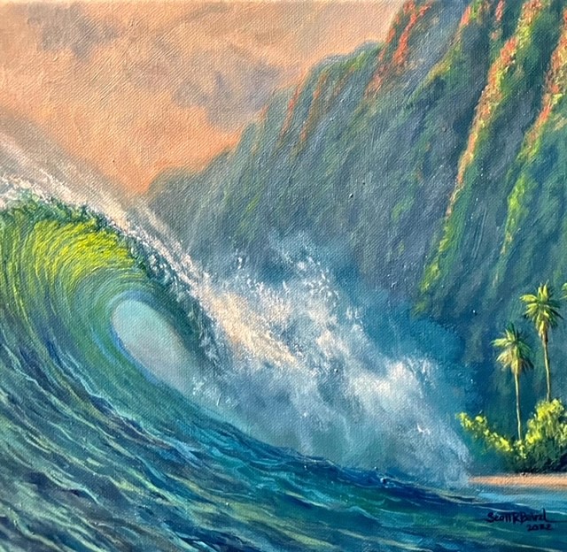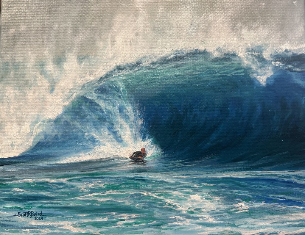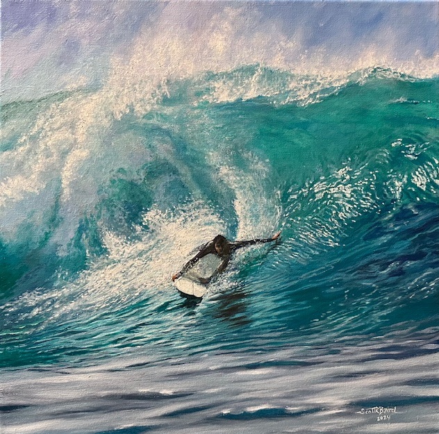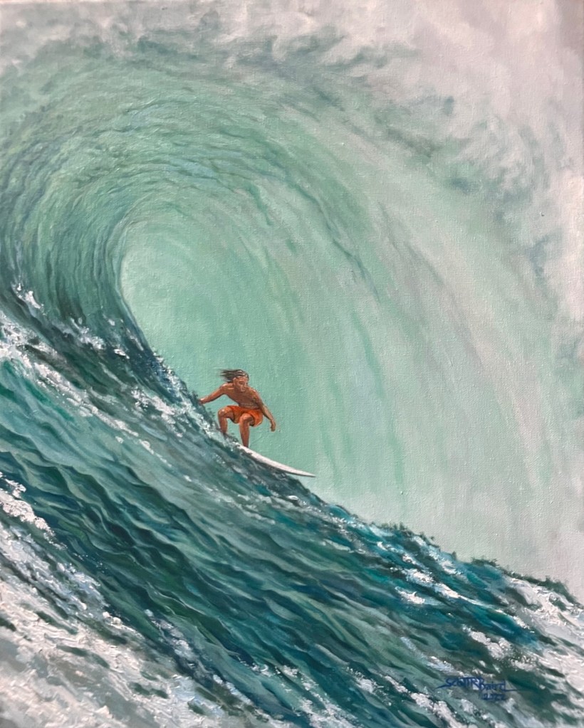 24″ x 20″ Oil on canvas — This was a fun painting I did for my new friend, Hau’oli Reeves. Hau’oli lives in Oahu and has surfed and body boarded for decades. Really cool guy! — Sold