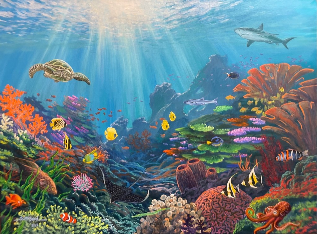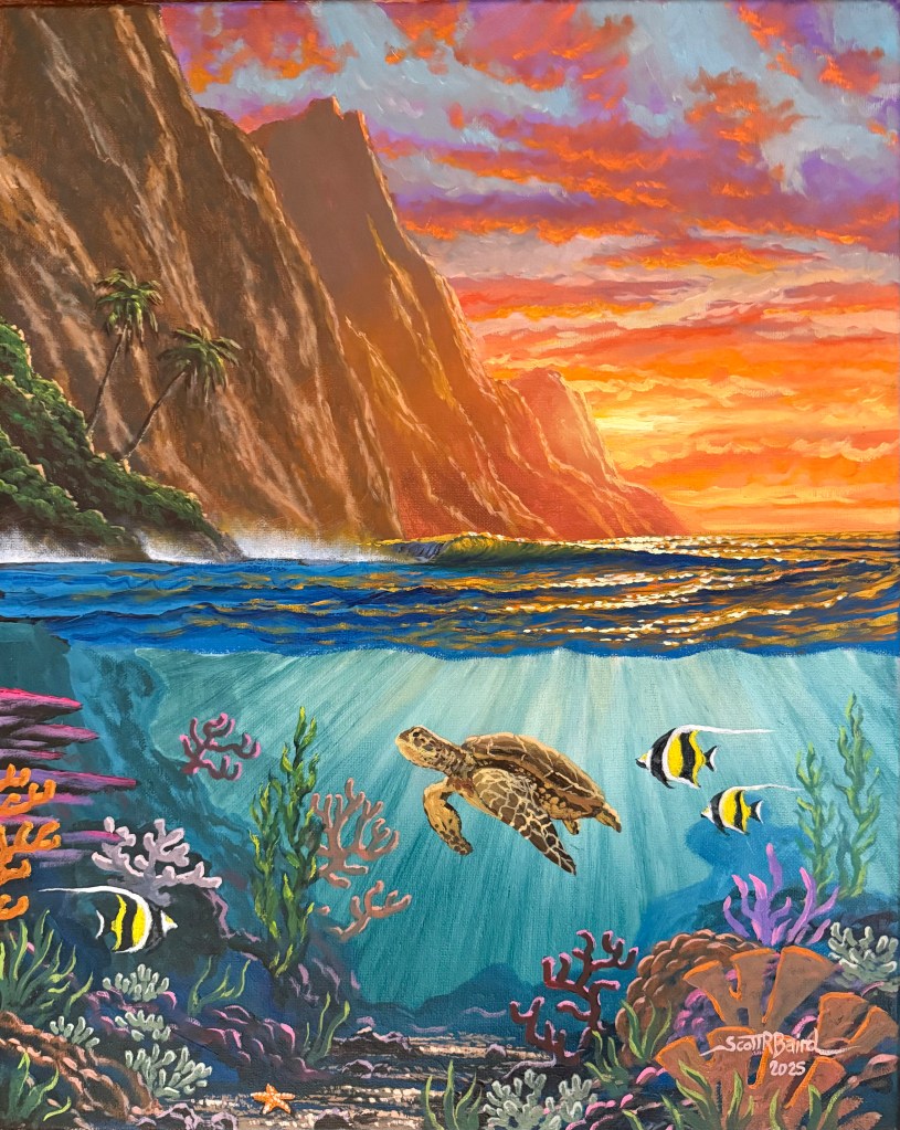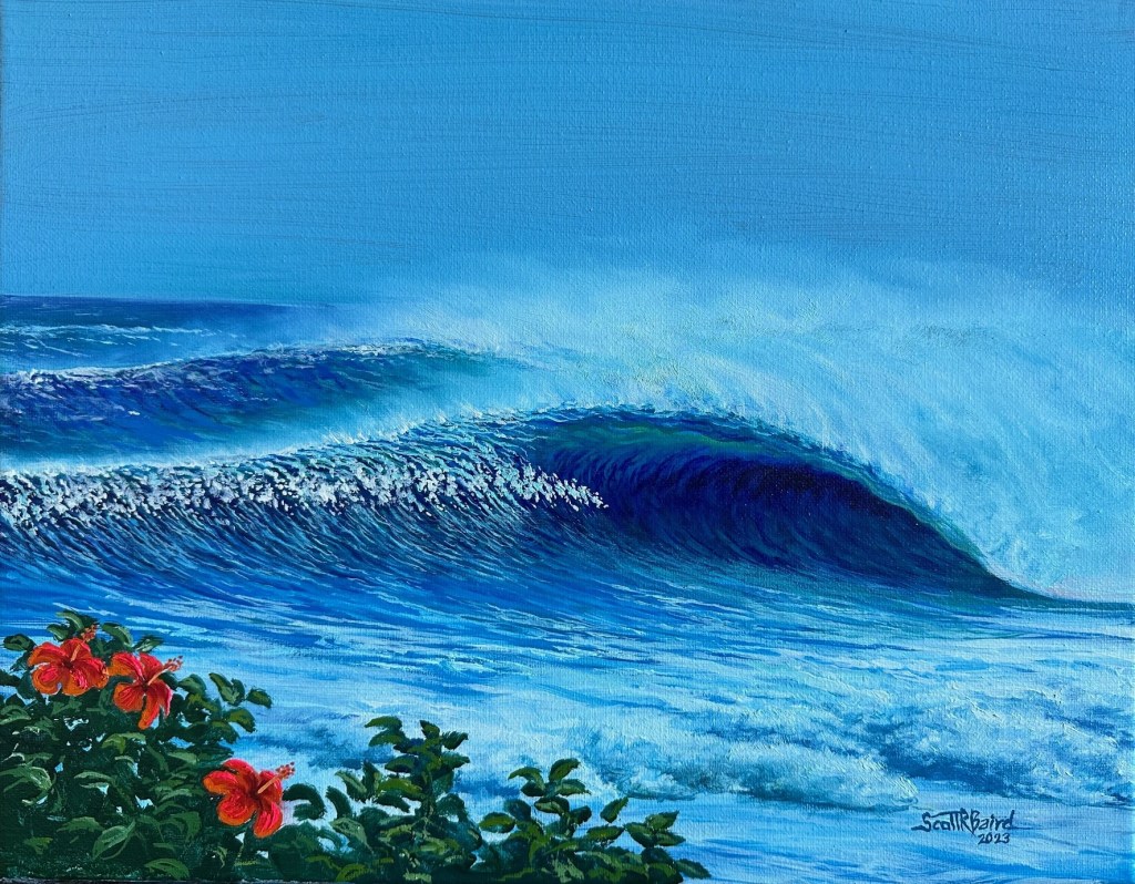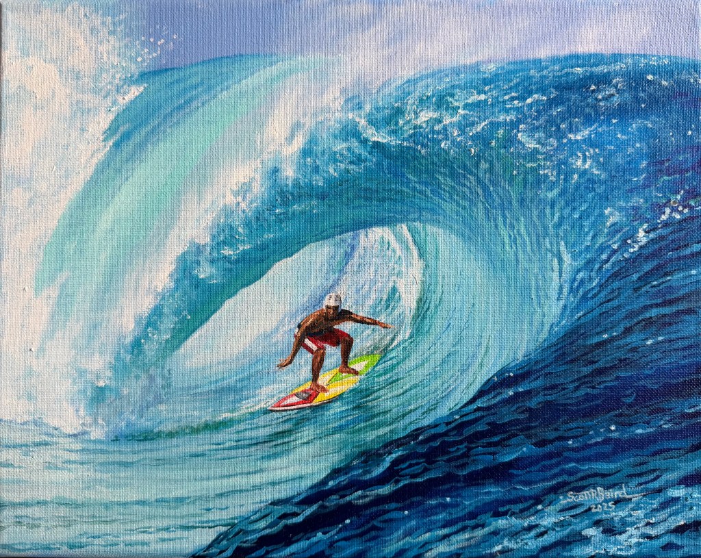 24″ x 20″ Oil on canvas — This was a fun painting I did for my new friend, Hau’oli Reeves. Hau’oli lives in Oahu and has surfed and body boarded for decades. Really cool guy! — Sold
