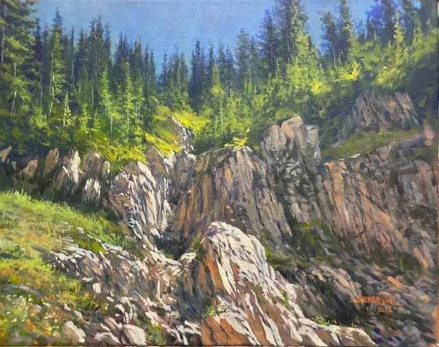 20″ x 16″ Oil on canvas. This is a typical scene you might see if you go on a hike in the Wasatch Mountains. From photo taken by Scott Ferguson. — Sold
